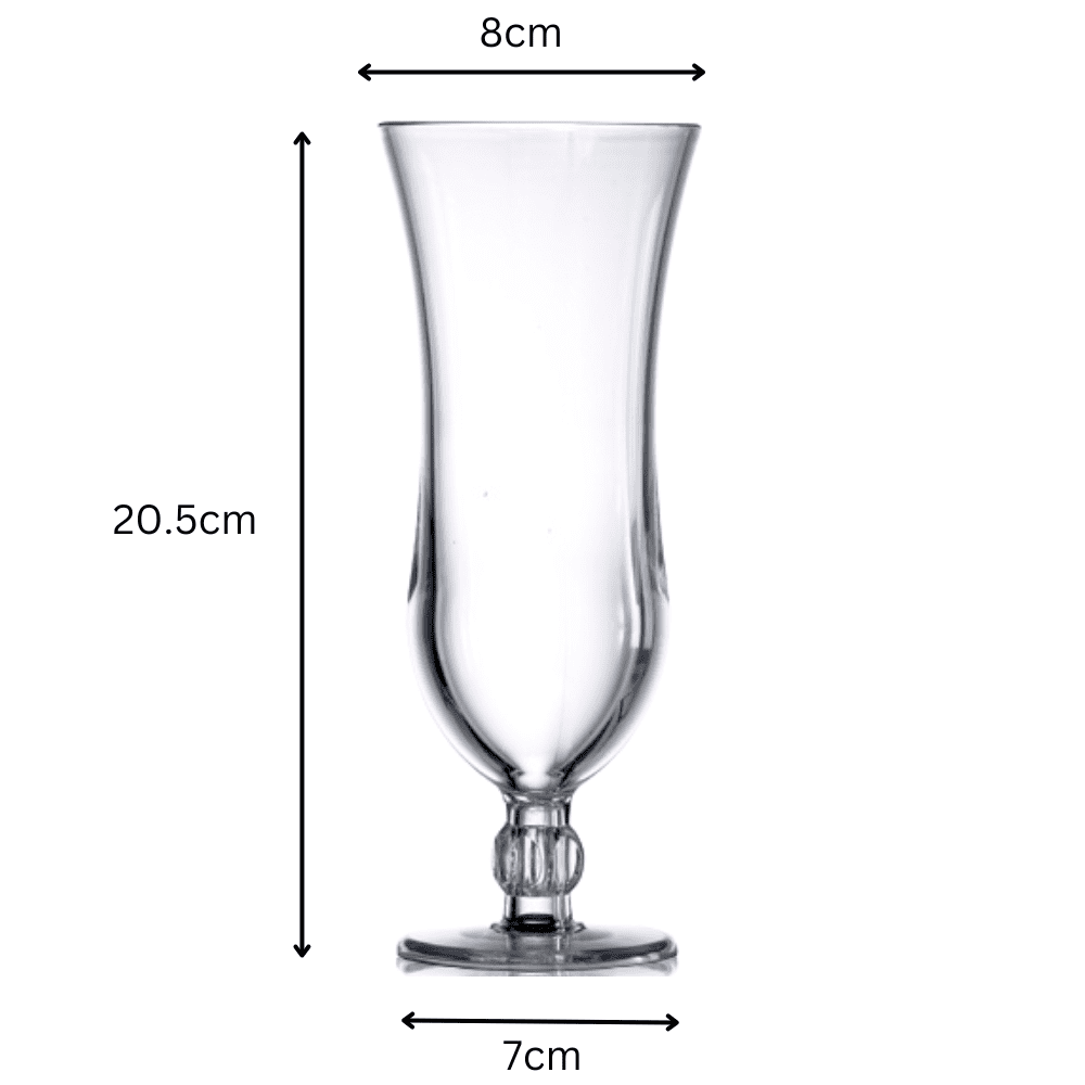A polycarbonate hurricane cocktail glass is a type of drinking vessel designed to resemble the classic hurricane glass commonly used for serving tropical drinks. However, unlike traditional glass hurricane glasses, this version is made from an unbreakable shatterproof material called polycarbonate.