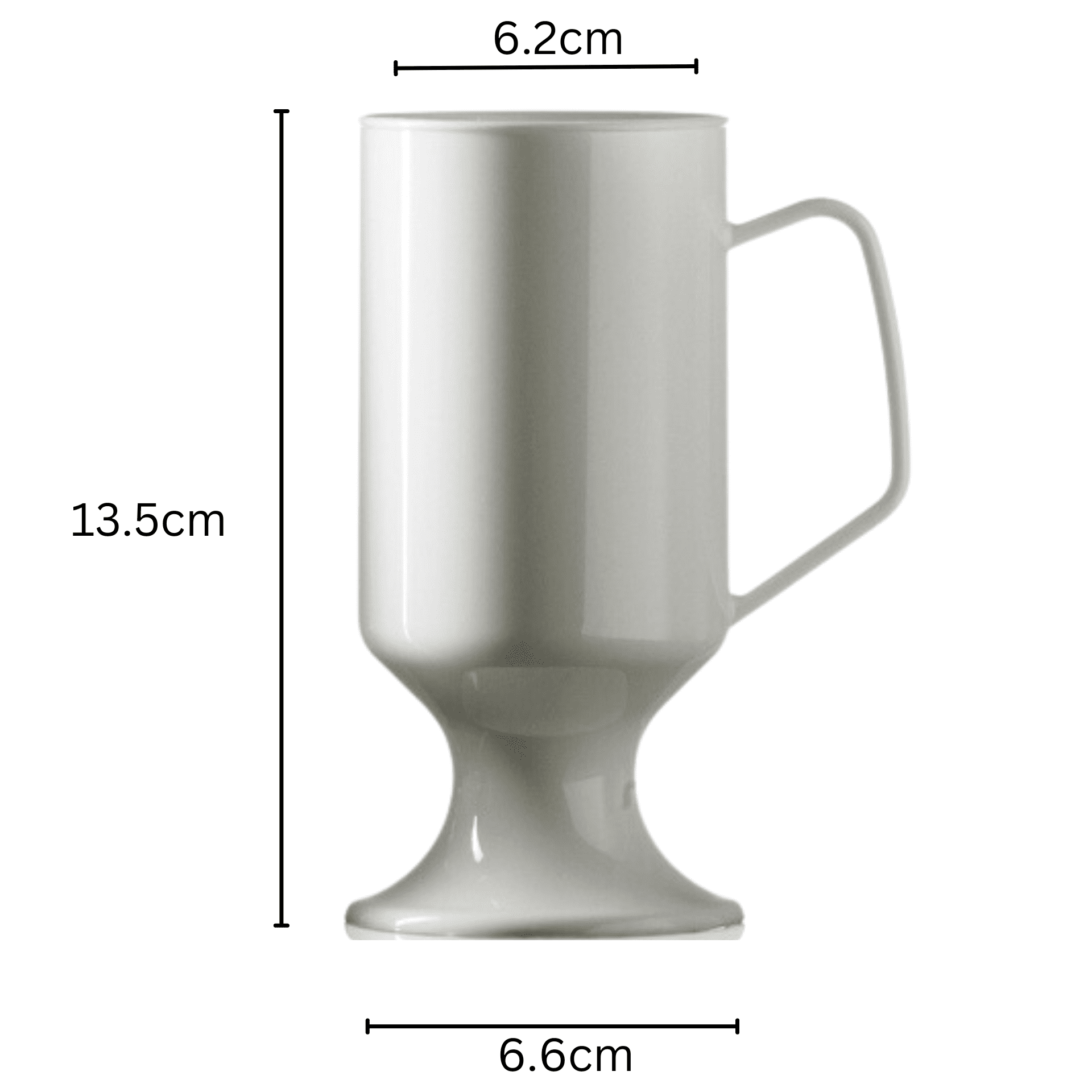 This is an unbreakable polycarbonate white mug for hot drinks such as coffee, tea, hot chocolate and mulled wine. They are are also perfect for cold beverages where the handle provides stability and ease of use. Suitable for any occasion, inside or out. Ideal for camping, barbecues and general home use.
